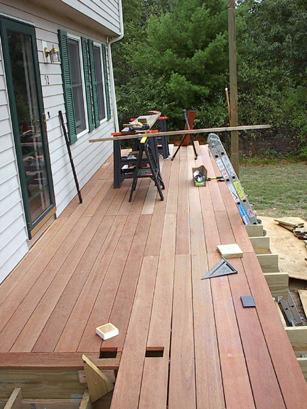 September 1, 2002 The decking (5/4" x 6" mahagony) is almost complete. |