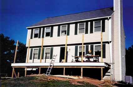 August 8, 2002 The foundations are in, the bushes are gone, and the steps have been removed. |
